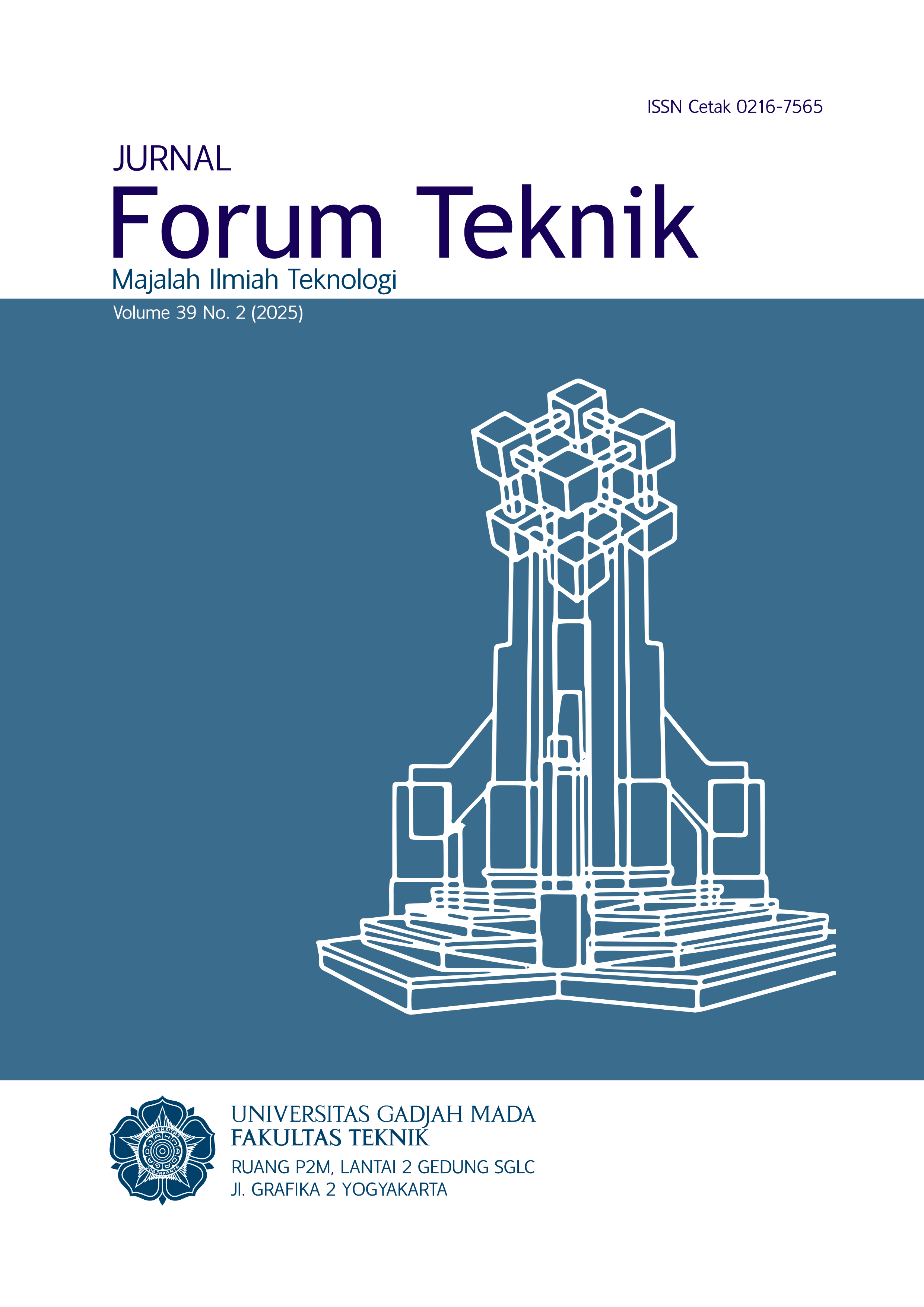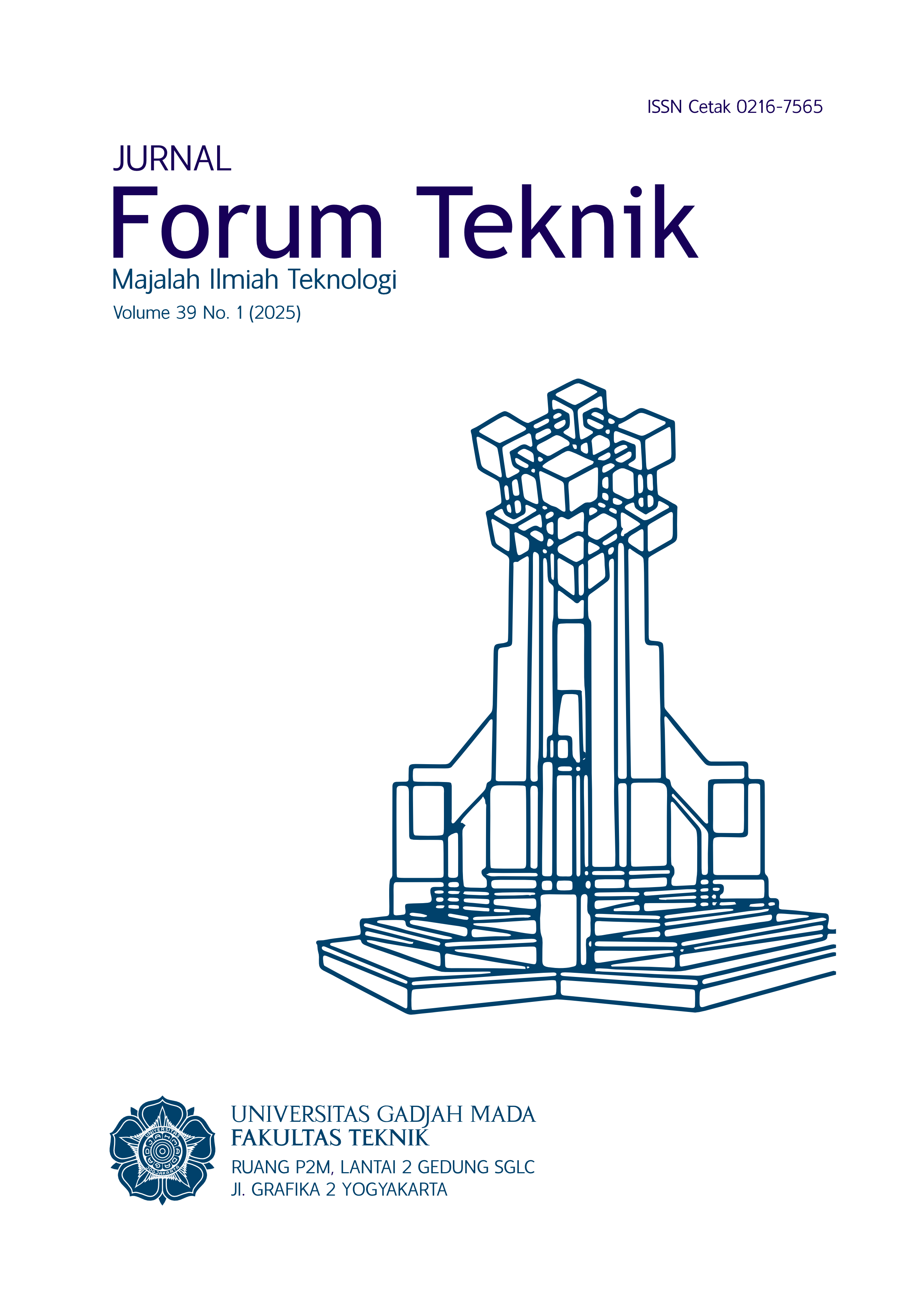 Vol 39 No 2 (2025)Forum Teknik adalah jurnal ilmiah yang ditinjau sejawat dan diterbitkan oleh Fakultas Teknik, Universitas Gadjah Mada (UGM), Yogyakarta. Dengan beralih ke platform Open Journal System (OJS) yang baru, Forum Teknik dengan bangga mempersembahkan Volume 39, Nomor 2 sebagai karya kegiatan Techno Fest dalam rangkaian acara Hari Pendidikan Tinggi Teknik (HPPT) FT UGM tahun 2025. Edisi ini menandai Langkah penting dalam komitmen kami untuk mendukung komunikasi ilmiah di bidang Teknik.